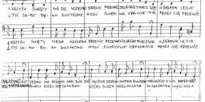 1. Wisi na krzyżu Pan Stwórca nieba, Płakać za grzechy, człowiecze potrzeba; Ach! ach! na krzyżu umiera, Jezus oczy swe zawiera. 2. Najświętsze członki i wszystko ciało, Okrutnie zbite, na …