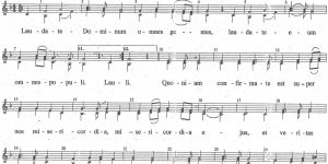 Laudate Dominum omnes gentes, /2x Laudate eum omnes populi. Quoniam confirmata est Super nos misericordia, misericordia eius, Et veritas Domini manet in aeternum, Veritas Domini manet in aeternum. Laudate Dominum …