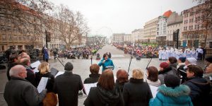 Poznań, Plac Wolności, 6.01.2020 r. Fragment kolędy „Dzisiaj w Betlejem” śpiewanej na Orszaku Trzech Króli w Poznaniu: