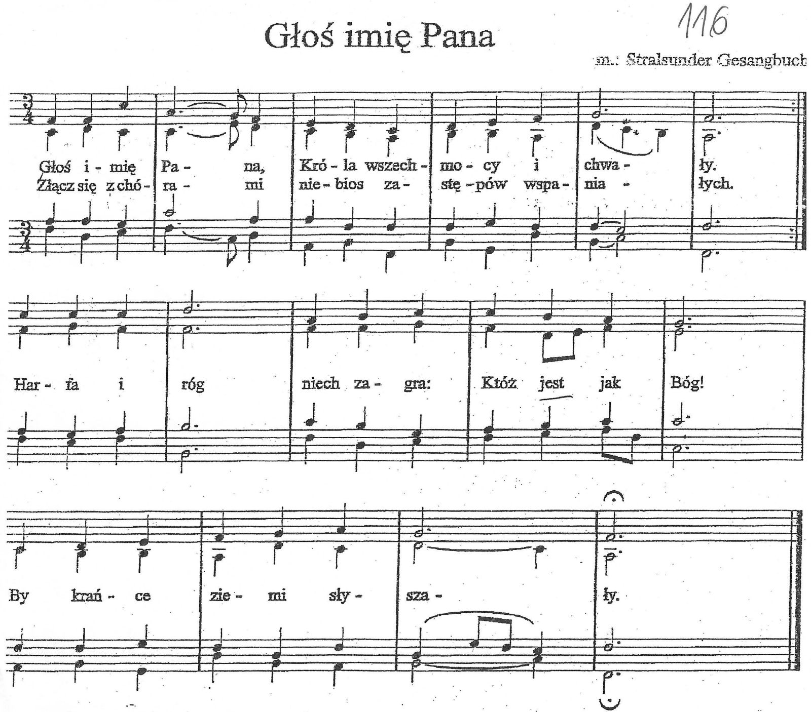 Głoś Imię Pana, razem ze wszystkim, co żyje, On twoim światłem, Jemu niech serce twe bije. On życiem twym, wdzięczności śpiewaj Mu hymn teraz i na wieki. Amen.